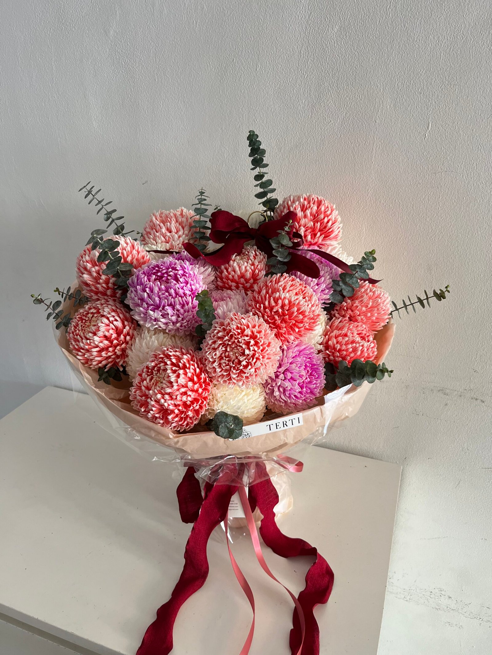 Elevate every meaningful moment with Terti’s signature Peony Mum Galore bouquet; an exquisite arrangement designed to embody timeless elegance and refined taste. Featuring premium, hand-selected Peony Mum in a harmonious colour palette of your choise, each bloom is meticulously arranged to create a full, cloud-like silhouette that feels both luxurious and effortlessly graceful.