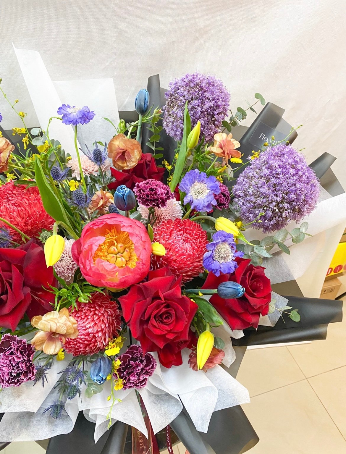 Using all premium import flowers, arranged in super extravagant size, approx. 1.2m in wide.